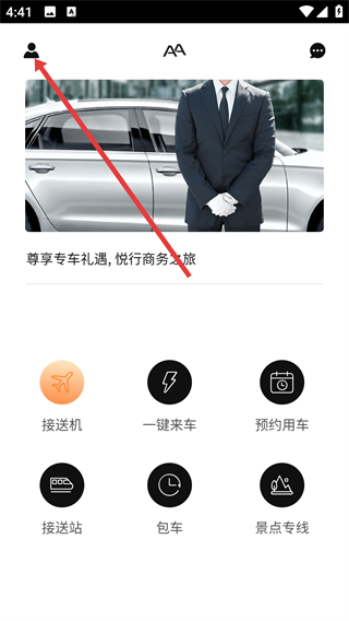 1、進(jìn)入AA出行主界面,點(diǎn)擊左上角【個(gè)人圖標(biāo)】,進(jìn)入個(gè)人中心頁面,可查看錢包、訂單等個(gè)人功能選項(xiàng)。