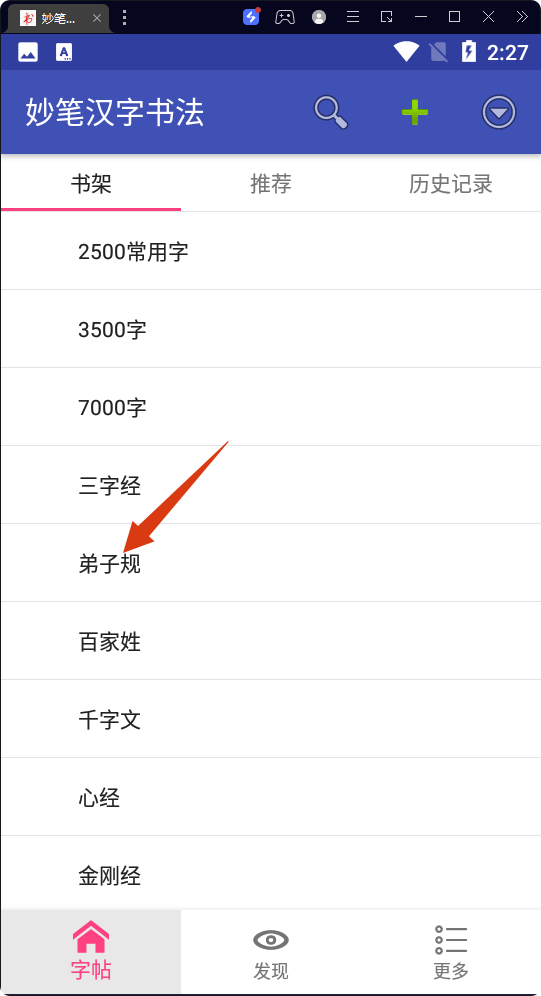 1、在字帖頁面選擇《弟子規(guī)》,進(jìn)入書寫界面。