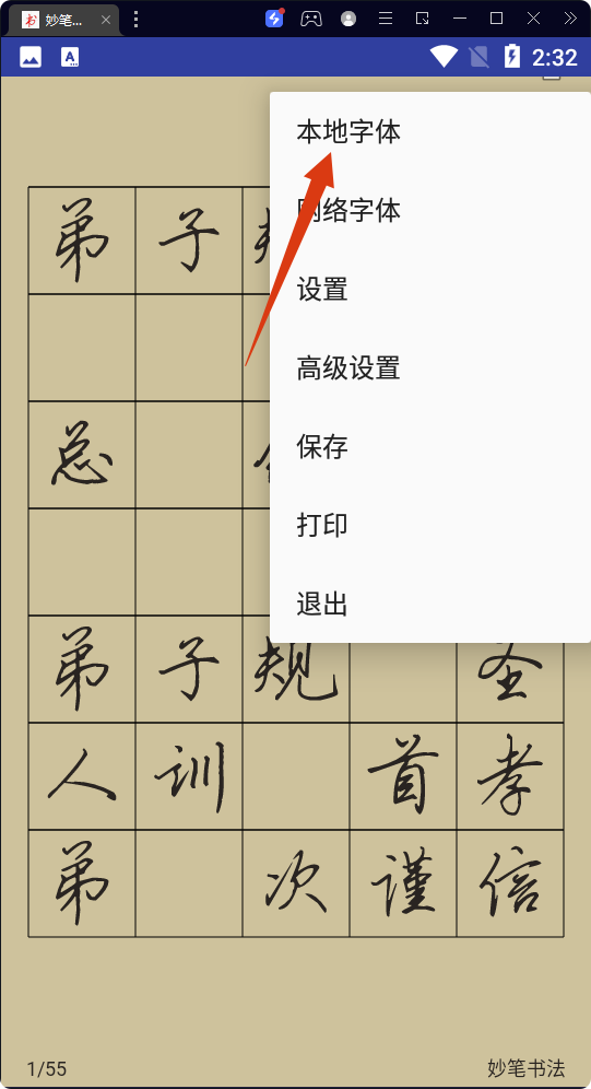 3、在功能菜單中點擊【本地字體】,進(jìn)入字體設(shè)置相關(guān)頁面。