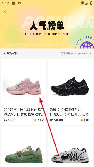 2、在人氣榜單中選擇目標(biāo)商品,如粉色休閑鞋,進(jìn)入商品詳情頁(yè)面。
