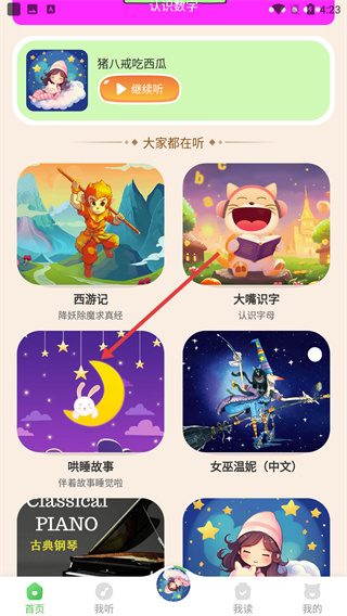1、在APP首頁,點擊【哄睡故事】板塊。