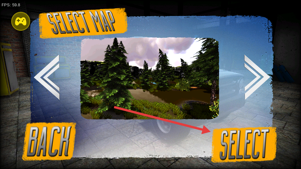 1、點(diǎn)擊【SELECT】選擇地圖,進(jìn)入不同的駕駛場(chǎng)景,體驗(yàn)多樣的越野駕駛挑戰(zhàn)。