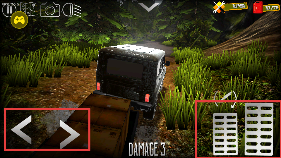 2、游戲中通過(guò)左側(cè)方向按鈕控制車(chē)輛方向,右側(cè)踏板控制車(chē)輛速度,精準(zhǔn)操控車(chē)輛在復(fù)雜地形中行駛。