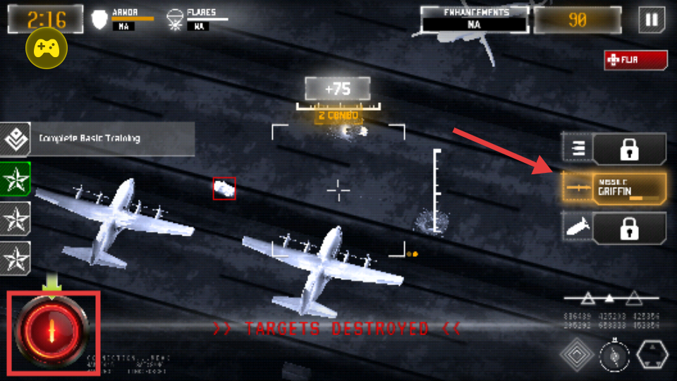 3、根據(jù)敵人類型切換武器,如使用【MISSILEGRIFFIN】攻擊車輛類目標(biāo),提升攻擊效率和任務(wù)完成度。
