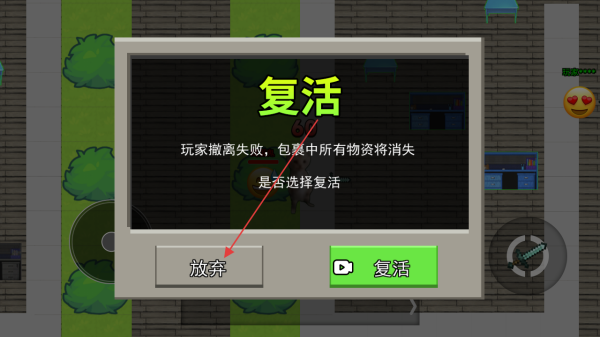 4、撤離失敗后,根據(jù)提示選擇【放棄】或【復(fù)活】,若選擇復(fù)活需留意物資消失的后果,謹(jǐn)慎決策。