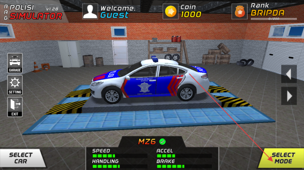 1、點(diǎn)擊【SELECT-MODE】選擇游戲模式,可先查看車輛屬性【SPEED】【ACCEL】等,為駕駛警車做好準(zhǔn)備。