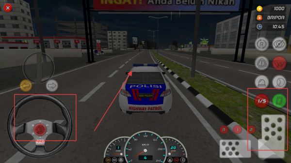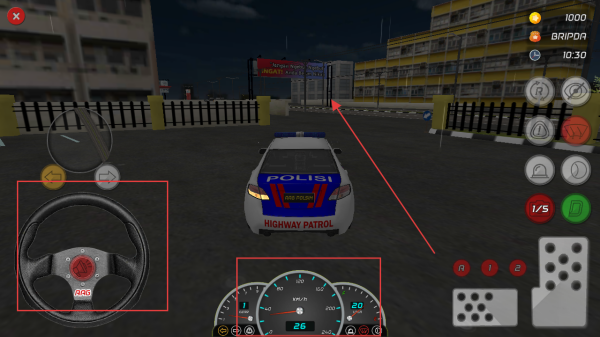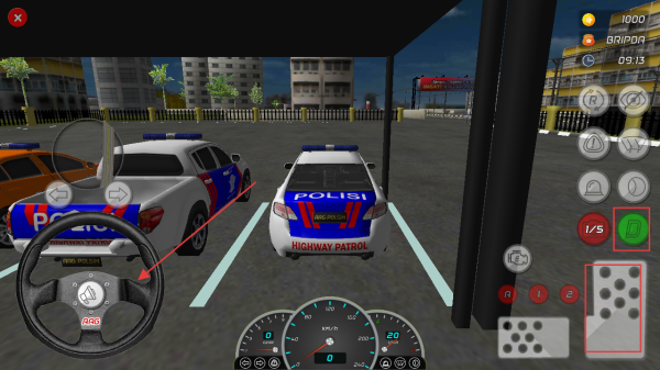 2、游戲中通過(guò)方向盤操控警車方向,右側(cè)按鍵控制車輛功能,在停車場(chǎng)中熟悉操作,為巡邏任務(wù)做準(zhǔn)備。