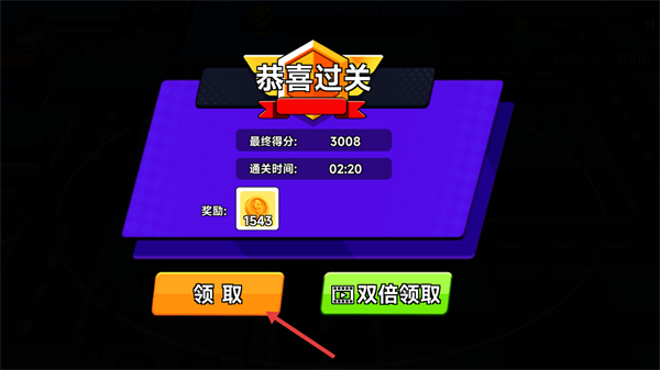 4、關(guān)卡通關(guān)后,點(diǎn)擊“領(lǐng)取”按鈕,獲得金幣獎(jiǎng)勵(lì),也可選擇“雙倍領(lǐng)取”獲取更多資源。